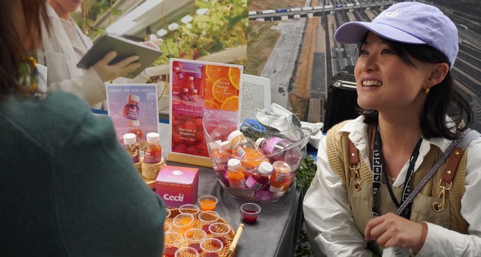 Showcasing the future of food innovation: Food Accelerator founders Tina (Humanitea), Louisa (Wildly Tasty), and Winifred (Root Mylk) present their sustainable products alongside programme manager Valerie Pondaven at the Business Design Centre.